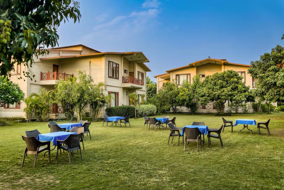 The Sunday Hotel & Resort at Kiyari Kham is situated approximately 10 km from the Amdanda Gate of Jim Corbett National Park, nestled among dense forests and winding creeks. The resort offers a seamless blend of nature and luxury with over 50 rooms, categorized into Premium, Attic, Family Rooms, and Suites, many of which feature private balconies overlooking the surrounding forest. Beyond comfortable accommodation equipped with modern amenities (AC, LED TVs, Wi-Fi), the resort provides expansive facilities including an outdoor pool, a restaurant and bar, bonfire zones, and elegant business halls and lawns suitable for destination weddings. To deliver an immersive wildlife experience, the hotel curates activities such as guided safaris, nature walks, riverside trails, bird-watching tours, yoga sessions, and stargazing nights, all led by expert guides.