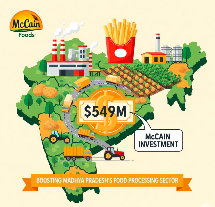 In a bold show of confidence in Central India’s agricultural and industrial potential, McCain Foods India Pvt Ltd has spearheaded a consortium comprising seven food-processing firms pledging a collective Rs 4,581 crore (approx. USD $549 million) to establish large-scale manufacturing units across Madhya Pradesh’s Ujjain division